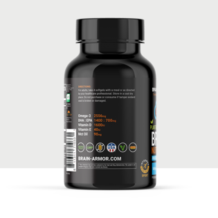 The Brain Armor portfolio is formulated using an ultra-pure algal source of Omega-3s with a 2:1 ratio of DHA:EPA, Vitamins D3 & E, and MCTs from coconut oil. From inception, the Company has been ingrained in science, ensuring all formulations meet the highest standards.